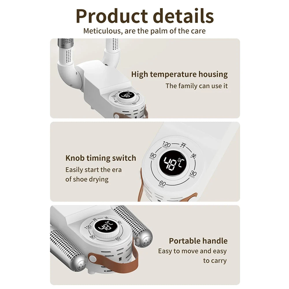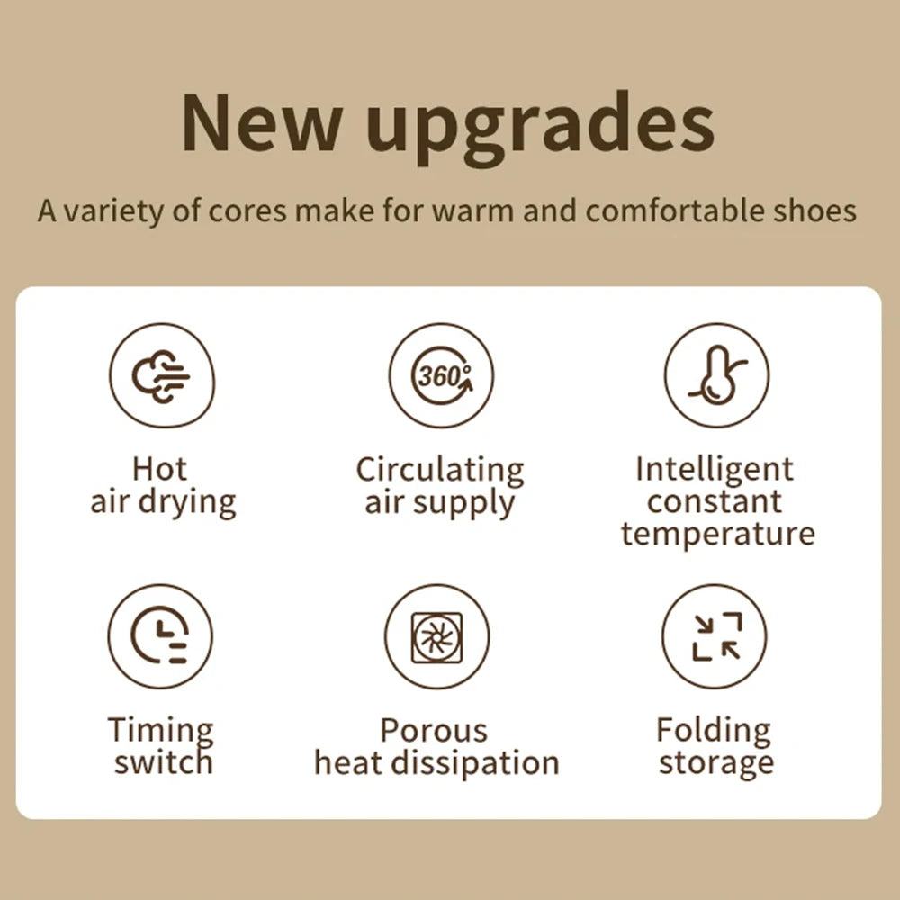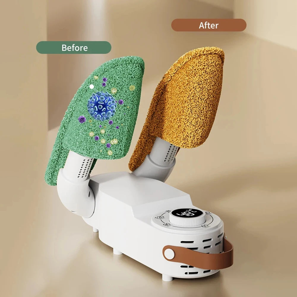 CozyDry's folding capability allows for easy storage, perfect for small apartments or travel. The intelligent temperature control prevents overheating, ensuring your shoes last longer. Set the timer and let it work its magic while you focus on more important things. Enjoy the peace of mind that comes with knowing your shoes are cared for.